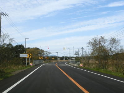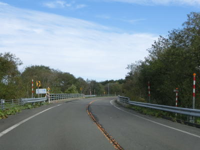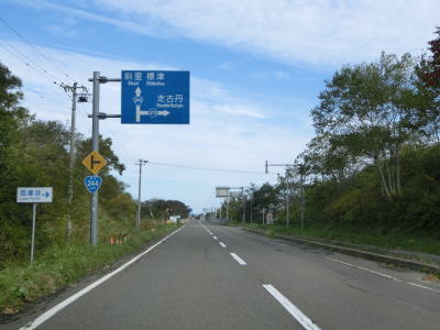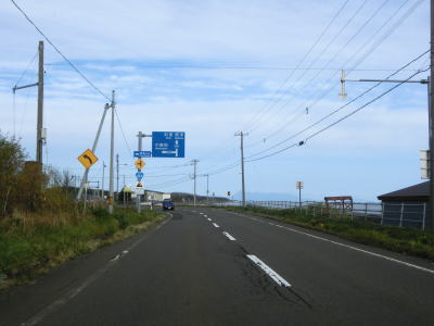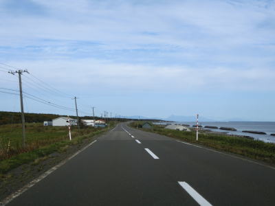 | 緩やかな左カーブで北海道r929交差点を通過して床丹橋を渡って右にカーブする。床丹橋からは沿線の集落が途切れてしまうが、道路状況に変化はない。海に沿ったアップダウンのある2車線道路を快走する。海の向こうに陸地が見えるが、国後島と思われる。 | ||