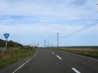 | 春別川の河口付近で道の駅「おだいとう」を通過する。道の駅の中には別海十景のひとつの白鳥台があり、その名の通り12〜3月には飛来する白鳥を見る事ができる。道の駅の南からは海岸線沿いに町道が通っておりR244は少し内陸の標高10m程度の場所を走る。野付小学校の近くを過ぎると沿線の家屋が多くなり、野付中学校の北東で北海道r363交差点を通過する。案内標識には海寄りの道路にヘキサは表記されていないが、そちらもr363に指定されている道路である。 | ||
