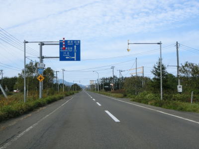 | 忠類交差点からはオホーツク海から離れて内陸部へと進むが、平坦で直線的な道路状況に変化はない。北海道r774交差点や北海道r1145交差点を通過しながら直線道路をひたすら北西に向かって走る。 | ||