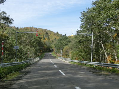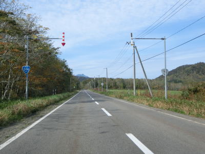 | 北海道r975交差点を通過してしばらく走ると沿線に樹木が多くなり、逆に牧草地は少なくなる。尻無川に架かる第41号橋を渡るが、第1号〜第40号の橋が存在しているか否かは確認していない。 | ||