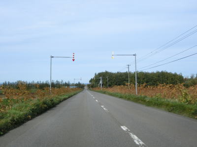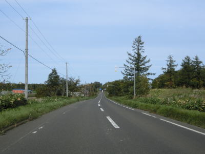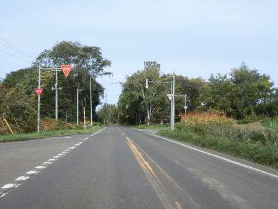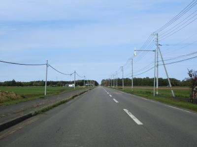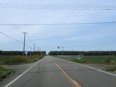 | ほとんど勾配もカーブもなく大規模な耕作地の中を走り抜けるという、実に北海道らしい状態が続く。そんな中で北海道r827交差点を通過するが、800番台の道道であっても走りやすい道路である。 | ||