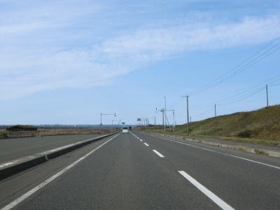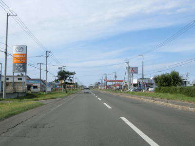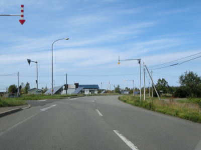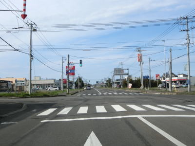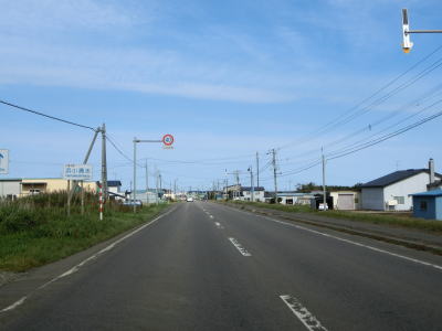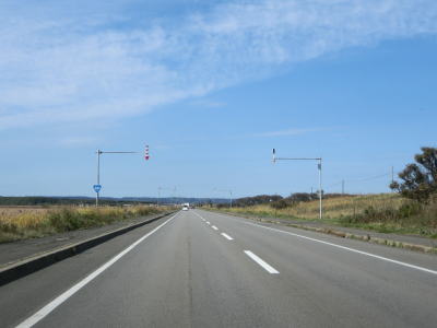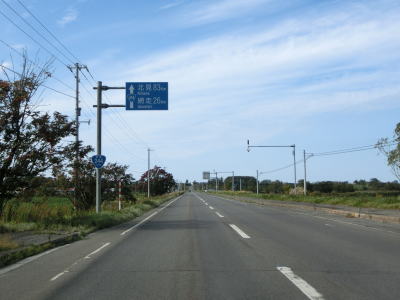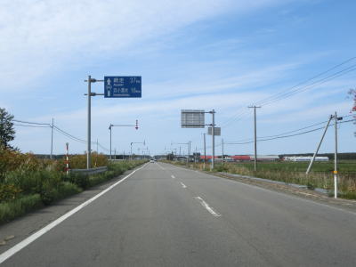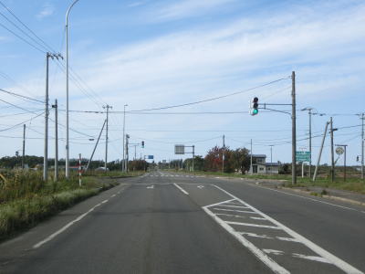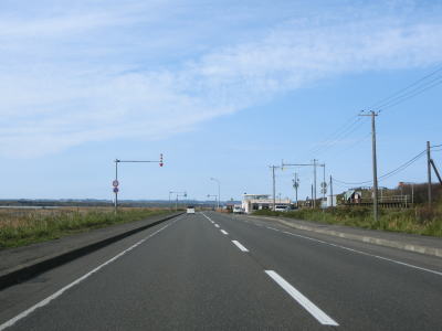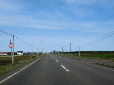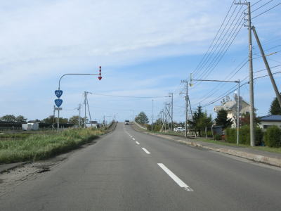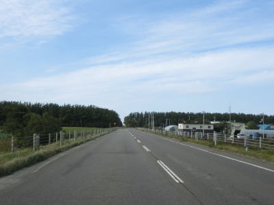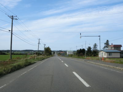 | 北斗交差点からも引き続き平坦な直線道路を走る。じゃがいも街道と呼ばれる町道が交差している右直角カーブを曲がると進行方角が北になる。じゃがいも街道を南に進むと小清水町の中心部に至る。 | ||