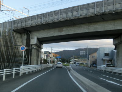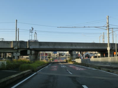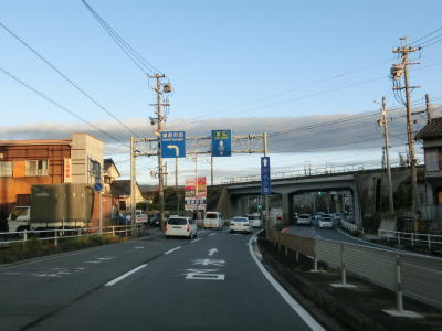 | 才ノ木南交差点を過ぎると上り勾配となり小坂井跨線橋を通行する。ただの跨線橋ではなくJR飯田線、名鉄名古屋本線、JR東海道本線、東海道新幹線と4つの鉄道をオーバーパスしており、しかも線路の間が離れている路線もあるのでかなり長い跨線橋となっており高架橋と言える状態である。 | ||