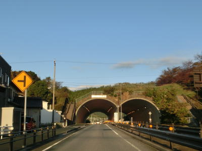 | 水竹町一反田交差点から約500mでR473との交差点を通過する。R473の右折方向には地名が表記されてないが、これは水竹町一反田交差点を北上して愛知r73を走った方がより快適により安全にR1まで行く事ができるためだろう。なお、r73の蒲郡市・豊川市境前後は三河湾オレンジロードと呼ばれる有料道路であった。 R473交差点を通過した直後に片側1車線ずつの荒子トンネルをくぐり、左にカーブした先で東海道新幹線の下をくぐる。この辺りのが中央バイパスで最後に開通した区間であり、アスファルトや中央分離帯はまだ新しい。 |