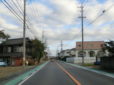 | 歩道のない狭苦しい2車線道路を走っていると寺津神社の東を通過する。小刻みなカーブを通過しながらさらに北上すると愛知r41・r383寺津大明神交差点に至り、左折して半田・碧南方面に進む。 | ||