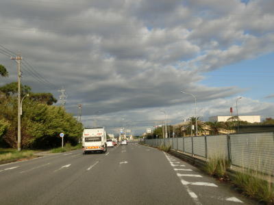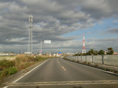 | R23・R248・愛知r396競艇場西交差点を過ぎてからも片側2車線道路だが、愛知r376捨石東交差点を過ぎると右側車線が減少する。中央分離帯もなくなり対面2車線道路になった直後に新捨石橋を渡る。その後も2車線道路が続いているが、海寄りには拡幅用地が確保されており既に工事が始まっている様子だった。 | ||