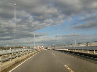 | 矢作川を渡ると市境を越えるため碧南市に入るが、沿線は水田ばかりで家屋は少ない。愛知r291矢作川大橋西交差点を通過して前浜橋で蜆川を渡る。橋の前後に上りと下りがあるが、緩やかなので走りにくさは微塵も感じない。 | ||
