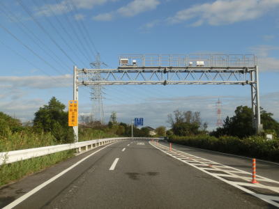 | 明石ICを通過してすぐに市境を越えて高浜市に入り、緩やかな右カーブを曲がっていると左側に車線が増えて北向き車線のみ2車線となる。車線が増えた地点にR247半田方面と愛知r47安城方面は左車線を走るようにとの標識が設置されている。 | ||