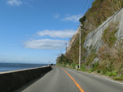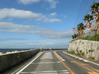 | 155.海岸線沿いを快走 | 156.急なカーブもある | 157.温泉施設の前を通過 |