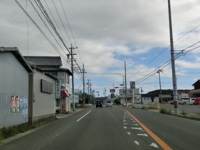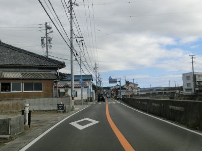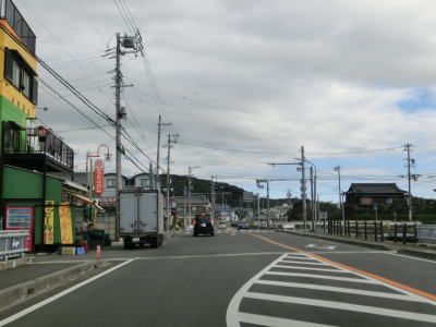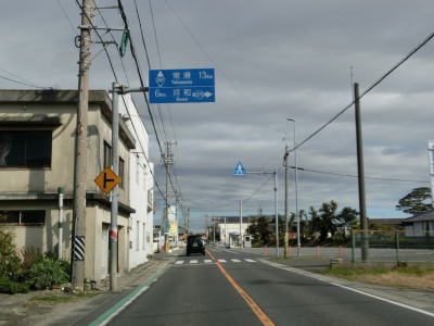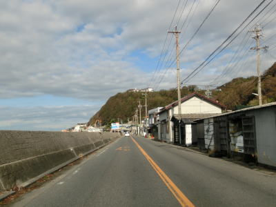 | 防潮堤の低い区間を走っていると大泊集落に入るが、集落に近い区間はさすがに高い防潮堤が設置されている。道路右側の家屋が少なくなると防潮堤も低くなる。防潮堤が低くなった所で愛知r470山海交差点を通過する。 | ||