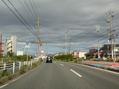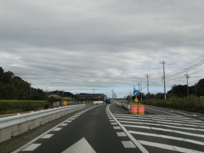 | 沿線の建物が少なくなり幾分か走りやすくなった2車線道路を走っていると市町境を通過して常滑市に入る。右、左と緩やかなS字カーブを曲がった先で中央分離帯が現れ、その後は片側1車線道路を走る。並走していた名鉄知多新線は東に向かって逸れていく。 | ||