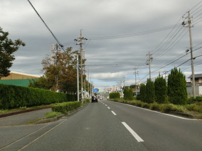 | 広い中央分離帯の片側1車線道路を走っているとラバーポールに替わった後に愛知r269西浦南小学校東交差点を通過する。以降は対面2車線道路となるうえに歩道は西側にしか設置されてない。それでも沿線に建物の少ない場所を通っているためか、さほど走りにくさは感じない。 | ||