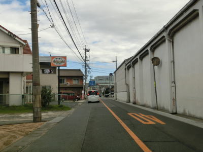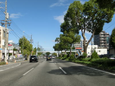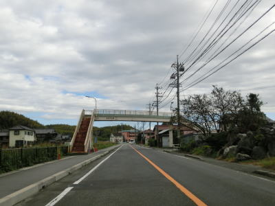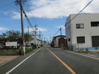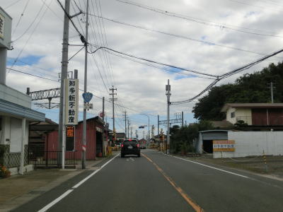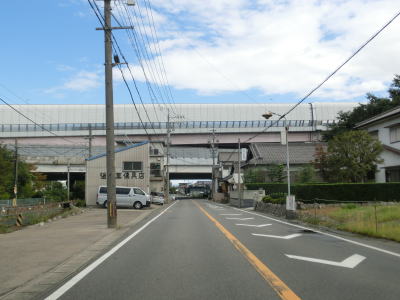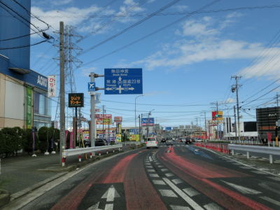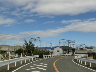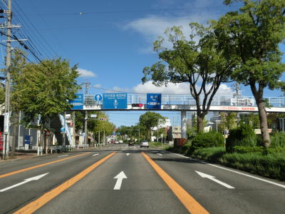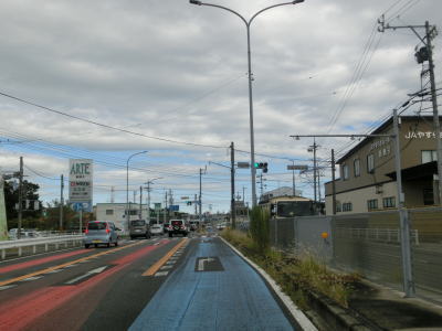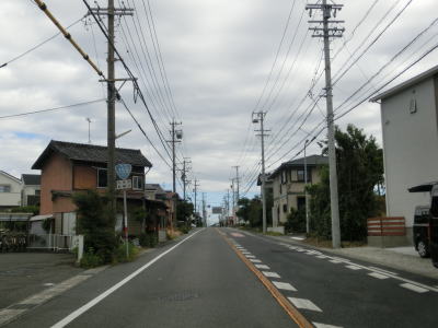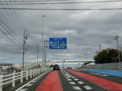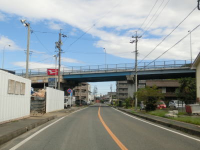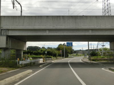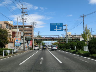 | 3つの名和高架橋の下を通ってからも歩道のない2車線道路が続いている。愛知r55の手前の市道との名和交差点は左折しなければならないが案内標識が設置されていないので要注意である。名和交差点からも歩道のない2車線道路で、勾配もカーブもないが若干の走りにくさを感じる。 | ||