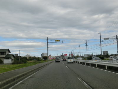 | R155原松町交差点を過ぎても片側2車線道路が続いており、交通量も多い。緩やかな勾配を上った先で愛知r265・r522多屋交差点を通過して緩やかな勾配を下る。交差点の前後の勾配から橋なり跨線橋なりありそうな感じだが、下を通っているのは中部国際空港と知多半島道路を結ぶ、有料の知多横断道路である。多屋交差点からはごく緩やかにアップダウンしている直線の片側2車線道路を走る。 | ||
