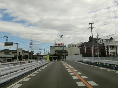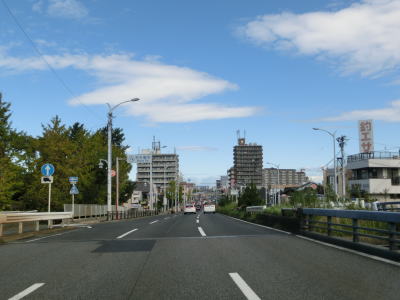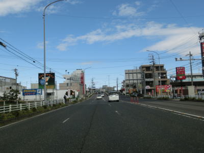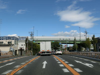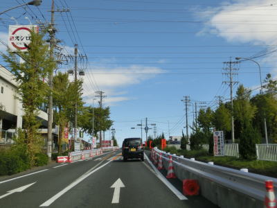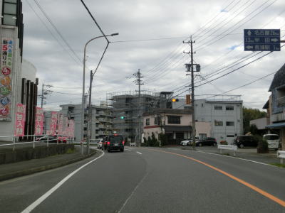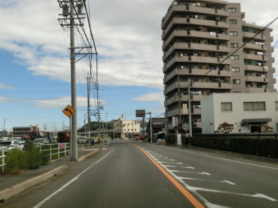 | 東海市に入った直後の信濃橋は架け替え工事のため仮設橋の前後の2ヶ所でS字状の急カーブを曲がらなければならない。信濃橋以降も家屋の建ち並んだ間を抜ける2車線道路が続いている。歩道は設置されていない点にも変化はなく、交通量が多いので走りにくさを感じられる道路状況である。 | ||