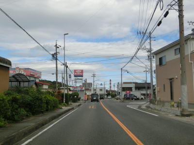 | 坊ノ下交差点からも対面2車線道路を走る。右カーブを曲がっていると愛知r256浜脇交差点を通過する。r256を西に進めばR155・R247の西知多産業道路に行けそうだが、跨道橋があり直接繋がってはいない。浜脇交差点からも家屋が建ち並ぶ中を抜ける2車線道路が続いており、カーブが連続しており見通しは良くない。市道が交差している東屋敷交差点は道なりに左方向へと進む。 | ||