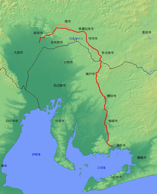 | 主な経由地 | 愛知県蒲郡市〜幸田町〜岡崎市〜豊田市〜瀬戸市〜 〜岐阜県多治見市〜可児市〜美濃加茂市〜関市〜岐阜市 |