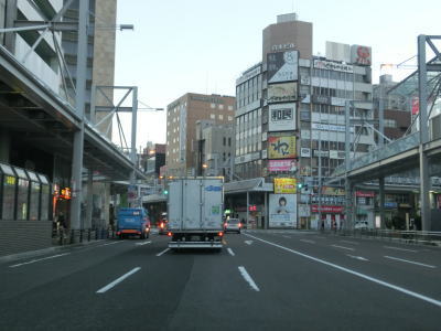 | 7.右折車線を含めると6車線ある | 8.アーケードの間を走る4車線道路 | 9.R248・R256・R303神田町5交差点を右折 |