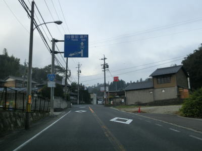 | 瀬戸市に入ってから約4.8km走るとR363瀬戸バイパスとの広の田交差点を通過する。R363には東海環状道しか案内されていないが、せと品野IC(に接続する市道)までの区間しか開通していない。広の田交差点からは緩やかなカーブが連続する下り勾配の2車線道路を走り、品野集落に入った所でR363現道との品野交番前交差点を通過する。R363の行き先が消されているが、現道もせと品野ICに接続している。 | ||
