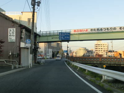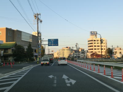 | 瀬戸川の左岸の一方通行道路を走っているといくつもの橋の南詰を通過する。川に街を分断されている形だが、多くの橋が架かっているためさほど不便ではないのかもしれない。道幅は狭いが対向車が現れないので比較的スムースに流れている。 | ||