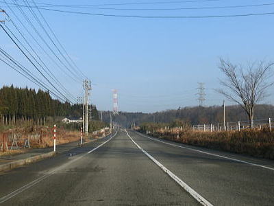 | R159免田交差点を直進してようやく単独区間になるが、道路状況は大して変わらない。融雪水用のパイプが埋設された2車線道路を北上し続ける。家屋の密集地であろうとなかろうと道路状況にはほとんど影響していない。 | ||