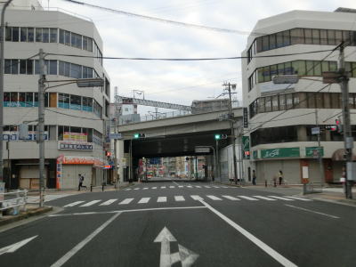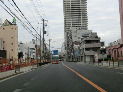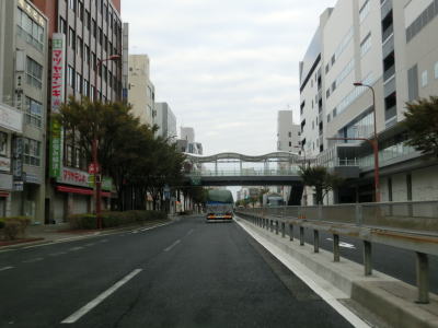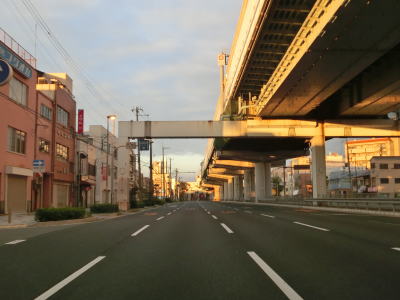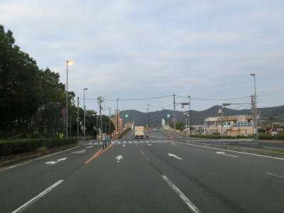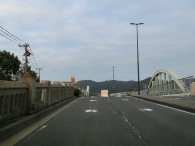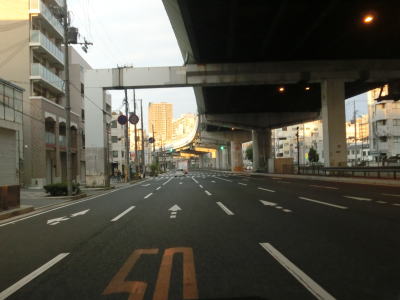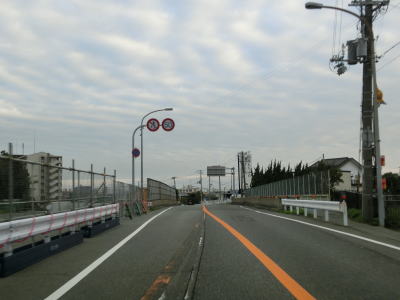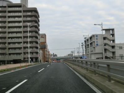 | 早朝という時間帯の割に交通量が多く流れの悪い2車線道路を走っていると周囲に高層マンションが目立つようになる。JR山陽本線の明石駅と山陽明石駅の真南で兵庫r60明石駅前交差点を通過し、以降は片側2車線道路になる。明石駅前の東側も東仲ノ町交差点までは多車線化の工事が行われている。 兵庫r52・r718大明石町1交差点を通過し、程なくして緩やかな右カーブを描きながら緩やかな勾配を上って明石大橋を渡る。大層な名称の橋だが、明石川に架かけられている短い橋であり、明石海峡大橋とは全く関係ない。 |