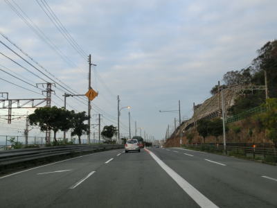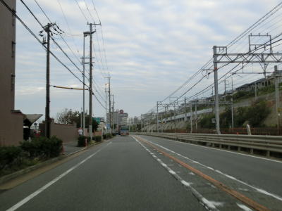 | 和坂交差点からは対面2車線道路となりやや急な勾配を上る。JR山陽本線をオーバーパスする林崎橋では多車線化工事らしきものが行われていた。跨線橋から先はJR西日本の網干総合車両所明石支所の北側を走る。 | ||