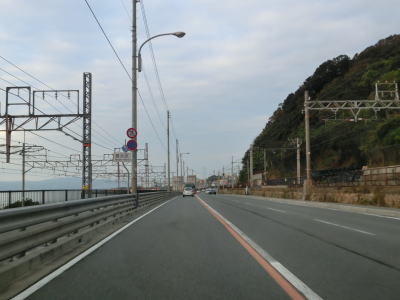 | 天神橋という名称の跨線橋でJR山陽本線をオーバーパスして平面道路になると中央分離帯の代わりに幅のあるゼブラゾーンになる。4車線道路を走っていると千守交差点を通過する。交差しているのは市道だが、かなり長い右折車線が設置されている。 千守交差点を過ぎると山陽電鉄の山陽須磨駅の南を通過する。国道の南にはJR山陽本線が走っており、須磨駅が置かれている。山陽須磨駅を過ぎると右側に山陽電鉄が隣接して並走している。須磨浦公園の東端からは山陽電鉄から少し離れるが、JR山陽本線が近接するようになる。JR山陽本線と須磨浦公園に挟まれた状態を走っており、JRの向こうには瀬戸内海が見えている。山陽電鉄が接近してきた辺りで左側車線が減少する。 |