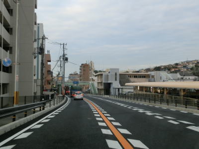 | 海浜公園前交差点から少し進むと須磨水族館前交差点を通過し、若宮ランプの出口が合流する。須磨水族館前交差点を過ぎると左端車線が減少して片側3車線道路になる。須磨海浜公園に隣接した状態を走っているとその敷地の東端付近で跨線橋と平面道路とに別れる。R250(R2とR28も)をトレースするのであれば右側の2車線のどちらかを走っている必要がある。跨線橋の手前に兵庫r65が交差しており右折車線も設置されているが、車両が進めるのは市道でありr65は山陽本線のガード部分が歩行者・自転車専用区間である。 | ||