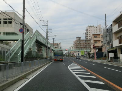| 西明石町5交差点付近でJR山陽本線の線路から離れた後に車線が増えて4車線道路になるが、左側車線の幅はやや狭い。沿線の建物が増え、さらに進むと西明石駅に近付くせいか、中高層のビルが多くなる。 | ||