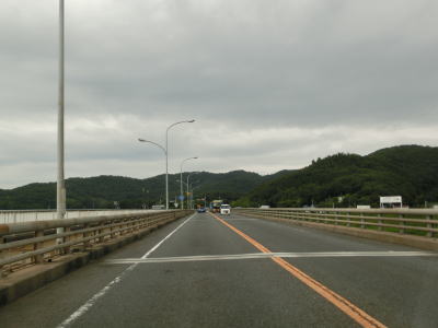 | 瀬戸内市に入ってから程なくして緩やかな左カーブを曲がりながら緩やかな勾配を上って岡山r79長船交差点を通過する。交差点の手前には昔ながらのドライブイン、長船ドライブインがある。 長船交差点からは吉井川の堤防の上を走る。R2との重複区間とあって交通量は多く、大型トラックの割合が高いのも特徴である。大型トラックにも対応している簡易駐車スペースを通過した直後に岡山r264八日市交差点を通過する。 |