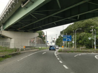 | 岡山バイパス東口ランプの側道を走っていると右にカーブしてR2の浅川高架橋の下を通る。右カーブにはR2福山・倉敷方面への側道が分岐しており、また浅川高架橋の下をUターンするかのように進めばR2・R250備前方面に戻る事もできる。 | ||