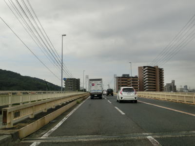 | 241.西向き車線のみ2車線になる | 242.沿線には商業施設が多い | 243.百間川橋 |