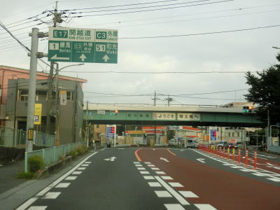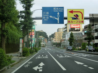 | 埼玉r88理化学研究所西門交差点を通過するが、交差点の地下にはC3東京外環道が通っている。東京外環道に沿っている国道がR298だが、R254和光富士見バイパスとの松ノ木島交差点から南の区間は国道ではなく市道や県道となっている。 理化学研究所西門交差点からも平坦な片側2車線道路が続いている。清水通りとの交差点を通過するが、案内標識に埼玉r112のヘキサが表記されているものの埼玉r109本町小学校前交差点までの100m弱は県道ではない。案内標識の矢印にくびれが確認できるが、県道ではない事を示しているのだろうか。清水通りとの交差点を過ぎてすぐに朝霞市に入る。 |