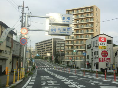 | 東埼橋交差点の直後に新東埼橋を渡って埼玉県和光市に入る。都県名を冠した橋ではあるが、延長は10m程度と幅の方が長い。緩やかな上り勾配の右カーブを曲がった先で埼玉r68和光陸橋交差点を通過する。和光陸橋交差点からは平坦な直線道路を走る。 | ||