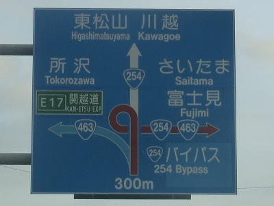 | 大和田交差点すぐの所でR254浦和所沢バイパスとR463との英ICがある。まずR463所沢方面が分岐して緩やかな上り勾配の先でR254・R463浦和所沢バイパスのさいたま方面が分岐する。どちらも左方向に分岐しており、さいたま方面は左側車線がそのまま分岐するためR254の現道を川越方面に進む場合は右側車線を走っている必要がある。 | ||