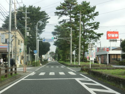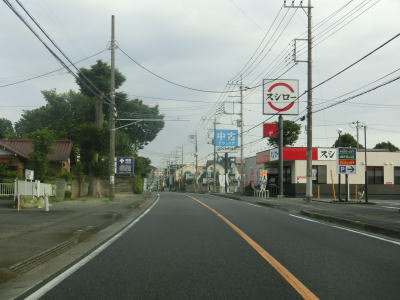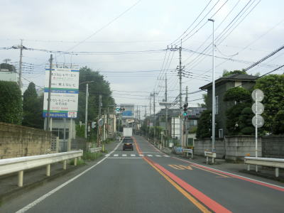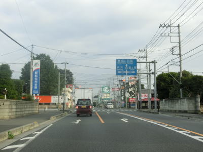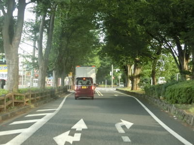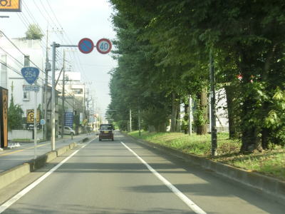| 英ICから現道に進むと対面2車線道路になるが、交通量も減っているためさほど走りにくさを感じない。三芳町に入った直後に並木のある中央分離帯が現れて片側1車線道路になる。場所が場所だけに日光杉並木かなと思ったが、植えられているのは杉の木ではない。この片側1車線道路は約1.2kmに渡って続く。 | ||