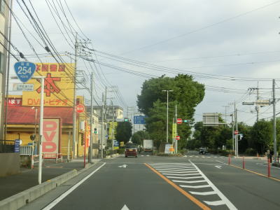 | 新座市に入ってすぐに榎木ガードで埼玉r36の上を通過する。R254の板橋方面とは接続しているが、逆方向とは接続していない。片側2車線の直線道路を走っていると埼玉r40野火止交差点を通過してからJR武蔵野線のガードをくぐる。ガードのすぐ先で跨道橋をくぐるが、これは新座貨物駅に出入りする車両のための跨道橋である。 跨道橋をくぐってから右にカーブしながら緩やかな勾配を下る。平坦に戻った後に埼玉r109大和田交差点を通過する。r109はR254の旧道だが、大和田交差点に接続しているのは支線のような区間である。 |