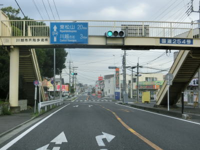 | 埼玉r8交差点の直後に不老橋を渡って程なくしてR16・埼玉r39新宿町北交差点に至る。案内標識にR254のおにぎりは表記されていないが、右折してR16との重複区間を東松山・さいたま方面に進む。 | ||