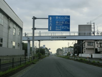 | R16新宿町北交差点の下にはJR川越線が通っており、直後の大仙波橋で東武東上線の上を通過する。片側2車線道路を北東に走っていると下り勾配となり仙波大橋を渡った後に平坦な状態に戻る。二桁国道との重複区間のため交通量は多いが流れは比較的スムースであった。 | ||