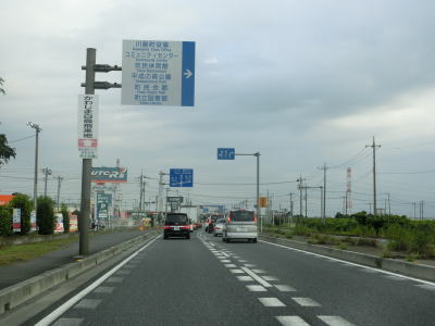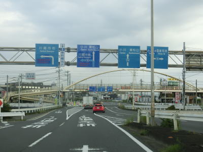| ショッピングモールの北端付近でR468/C4圏央道の本線の中山橋をくぐり、その先で川島ICを通過する。インターチェンジの周辺には工場と倉庫が集中しているが狭い範囲でそれらを過ぎると周辺には水田が広がっている。 | ||