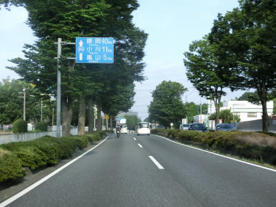 | 小川バイパスに合流してからも対面2車線道路が続いているが、車線幅に余裕があり走りやすく感じる。本田技研工業の寄居工場の南西から北にかけて回り込むようなルートを通ってから左にカーブして東武東上線との並走が再開される。東武東上線から少し離れた状態で並走しながら北上していると大きく左にカーブして進行方角を西に転じる。 | ||