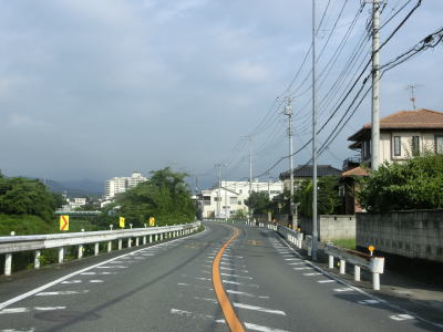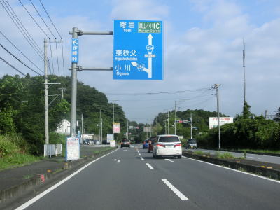 | 緩やかな右カーブを曲がっていると嵐山町に入る。関西在住だと“あらしやま”と読みたくなるが“らんざん”と読む。ごく緩やかな上り勾配の片側2車線道路を走っていると埼玉r173嵐山渓谷入口交差点を通過する。右折方向は埼玉r69だったが、r173に変更されたようである。嵐山渓谷入口交差点からは少しだけ下るが、すぐに上り勾配に戻る。 | ||