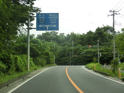 | 西の方角に向かって対面2車線道路を走っていると埼玉r81塩沢交差点を通過し、一旦下った後の上り勾配の先で埼玉r30露梨子交差点を通過する。小川町の中心部で交差していたr30は飯能寄居線という路線名であり、ここまでが重複区間である。小川バイパスの現道が国道の指定を外れるとr30の単独区間が増えるものと予想される。露梨子交差点を過ぎて緩やかな勾配を下り始め、掘割を大きく右にカーブしてから鉢形陸橋で東武東上線とr30の上を通る。 | ||