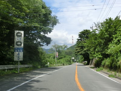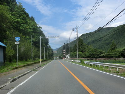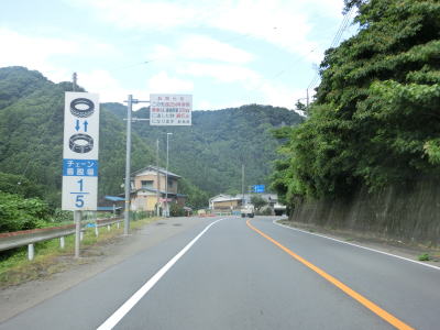 | 中小坂交差点を過ぎて少し走ると5ヶ所中の1ヶ所目のチェーン着脱場を通過する。そこにも県境を含む区間が雨量通行規制区間である事を警告している。鏑川流域の集落を繋ぐようにして緩やかな上り勾配の2車線道路を走る。山間部の国道としては整備されている部類に入り、交通量が少ないため走りやすいと言える。 | ||