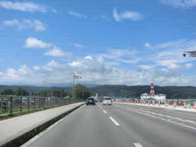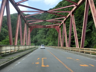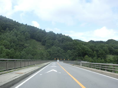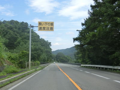 | 閉鎖用ゲートを通り抜けて下り勾配が始まってすぐに内山大橋を渡る。渡り終えた所から上り勾配の反対側車線に登坂車線が設置されている。登坂車線の延長や800m程度で出入沢橋もその中にある。 | ||