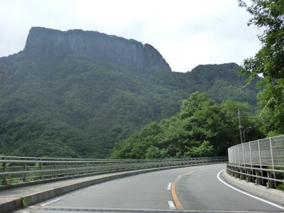 | 右にカーブしながら11号橋と12号橋を渡るが、橋上から艫岩がよく見える。内山峠区間は駐車どころか停車も禁止されているので車両から降りて眺める事はできない。13号橋を渡って右カーブを曲がり、14号橋と15号橋を渡る。ヘアピンカーブの手前に町道(林道?)との交差点があり、荒船風穴や神津牧場、R254旧道に行く事ができる。 | ||