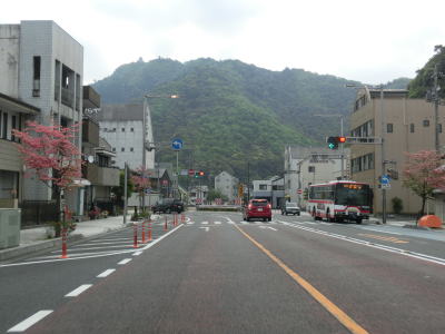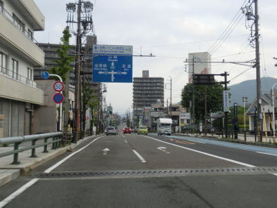 | 本町1交差点から約250mで右の直角カーブを曲がり、さらに250m程進んだ所で岐阜公園前交差点に突き当たるので今度は左折する。本町1交差点〜岐阜公園前交差点の間が一方通行区間であり、車両で飯田市から岐阜市方向のトレースする場合は反対方向に一方通行の市道を経由しなければならない。 | ||