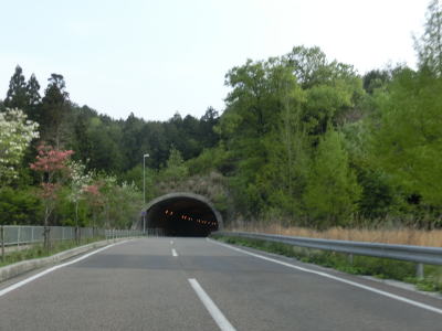| 美山大橋北交差点を通過してすぐに美山第一トンネルに入る。トンネルの途中から左にカーブしておりトンネルを出てからも続いている。勾配はこれまでに比べてだいぶ急と言える。美山第二トンネルを出て右の急カーブを曲がると最後の美山第三トンネルをくぐる。美山第三トンネルにだけ手前に名称を記した標識が設置されている。 | ||