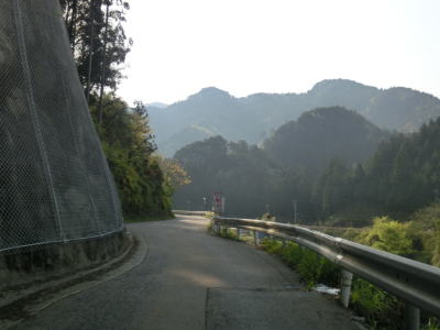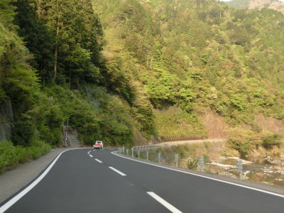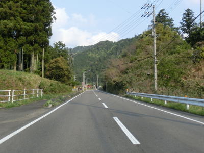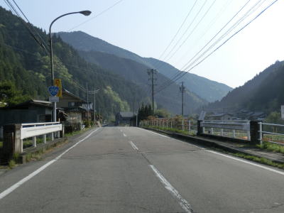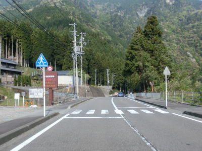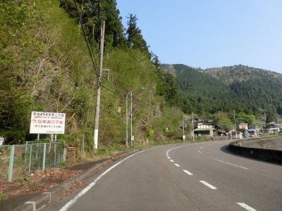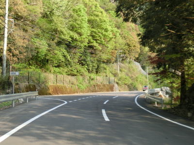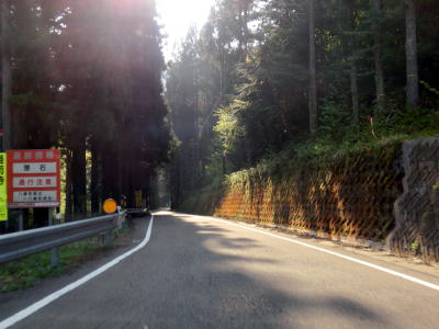 | 狭いと言っても通行できない対象はあくまで全長8m超の大型車であって、乗用車であれば通行に苦労する道幅ではない。勾配は緩やかでカーブはいくつか急なものもあるが全体的には緩やかなものが多い。集落が現れてからも狭路が続いているが、交通量が少ないためさほど走りにくいとは感じない。道路改良工事が行われている箇所もあるが、それぞれの距離は短く全体が2車線になるのはまだまだ先の話だろう。 | ||